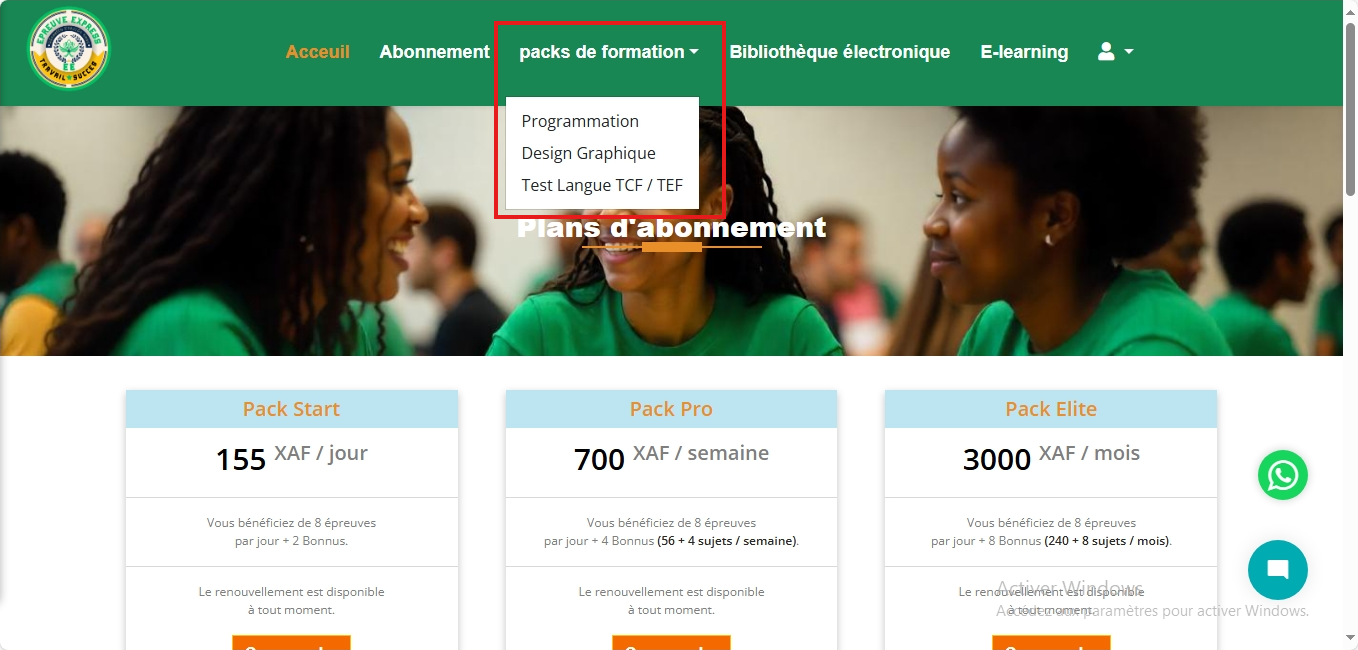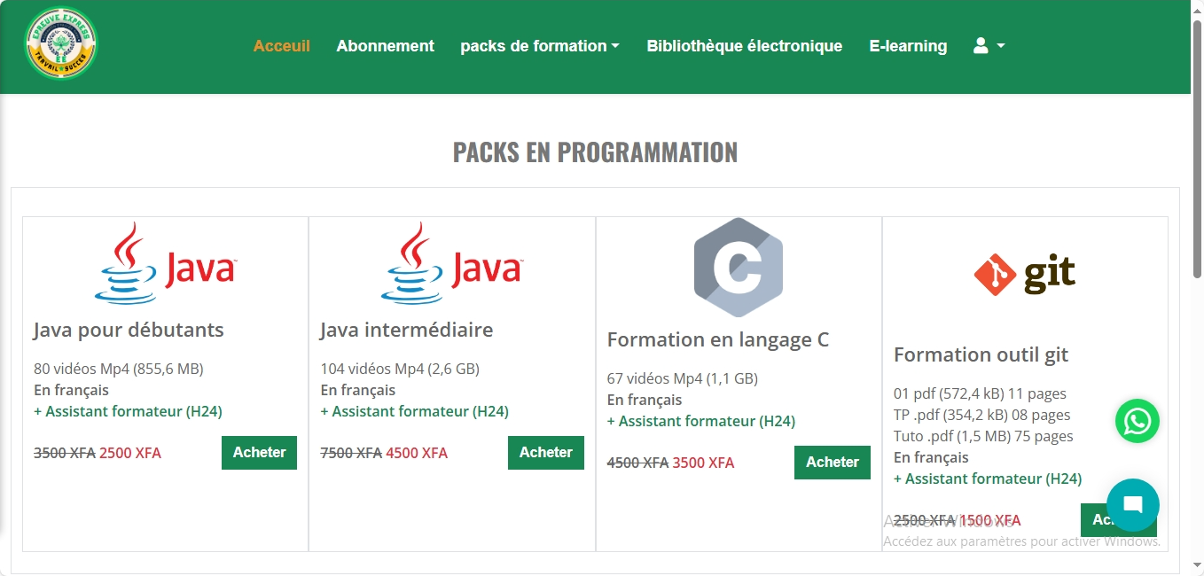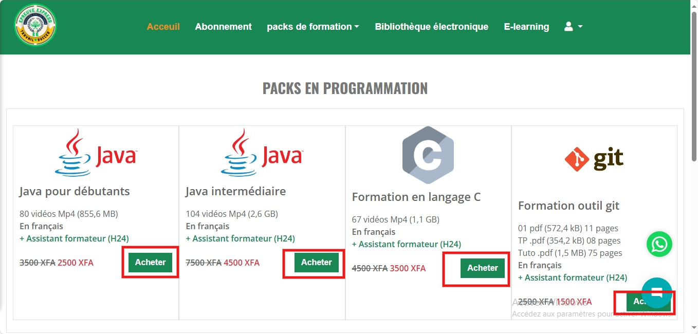 Pour acheter les packs de formations suivez les étapes suivantes :
