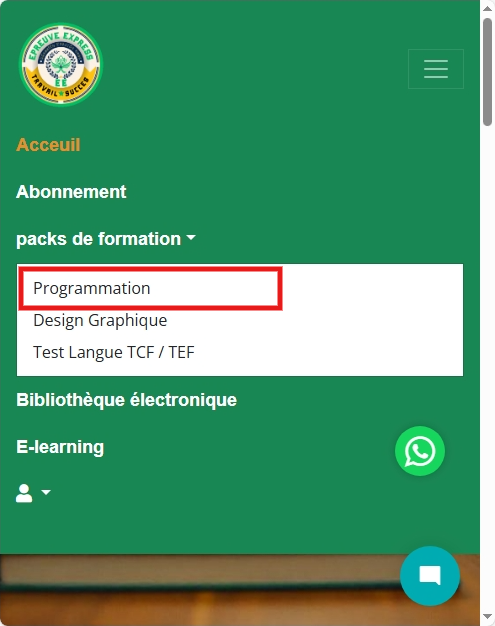iv. Cliquer sur le domaine de formation de votre choix, par exemple : programmation :